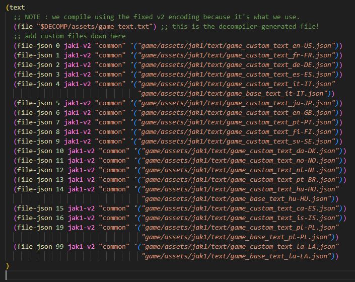 game/assets/{GAME_NAME}/jak1/game_text.gpand add the base and custom text files to the list: