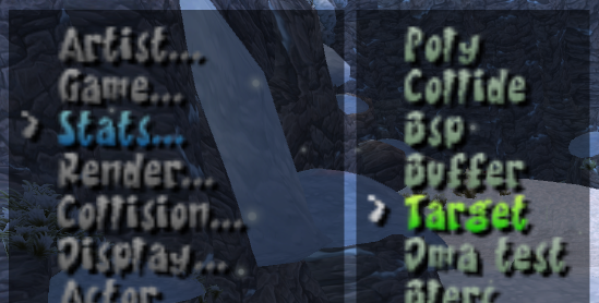 Next thing to do is to open the in-game debug menu with R3 or the corresponding input on your device and going to Stats… > Target and activate it.
