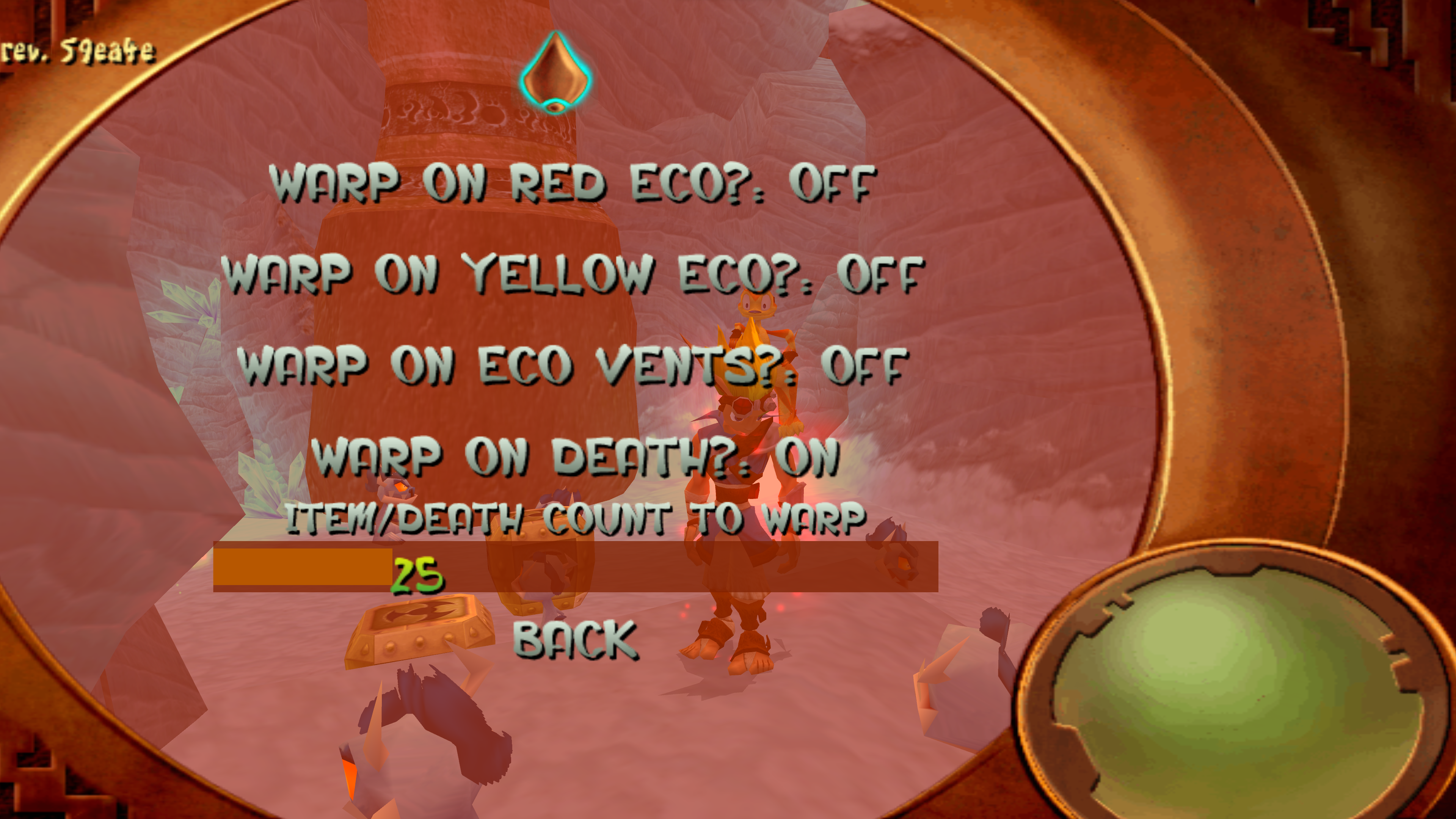 - toggling warp when picking up Power Cells, Precursor Orbs, Scout Flies, Eco and/or dying