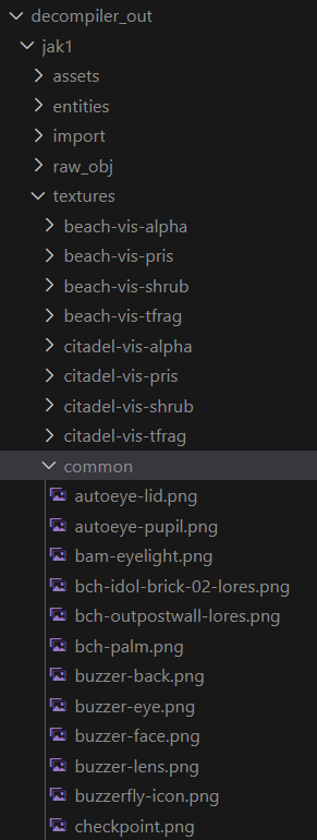 Afterwards you'll need to run the decompiler/extractor again to extract the textures. Once that completes successfully you should find the extracted textures at data/decompiler_out/jak1/textures, or if you're using the OpenGOAL Launcher at <your-install-directory>/active/jak1/data/decompiler_out/jak1/textures.