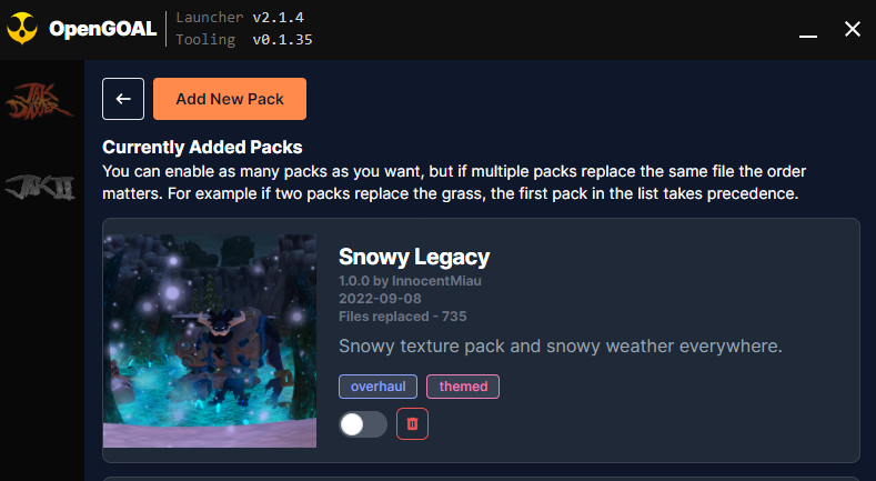 metdata.jsonfile that abides by the following format - https://github.com/open-goal/mod-bundling-tools/blob/main/schemas/texture-packs/v1/texture-pack-schema.v1.json- If you aren't familiar with JSON schema, here is an example (which may become out of date in terms of newly supported fields)