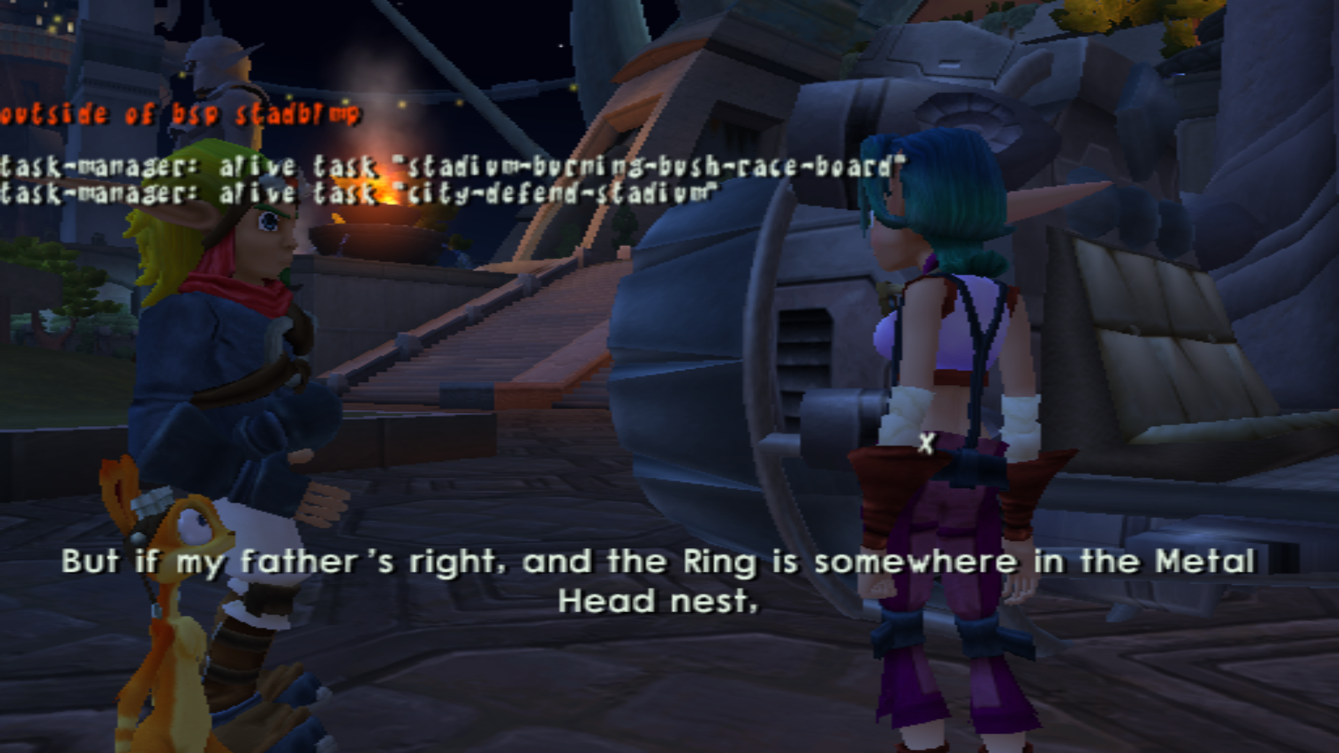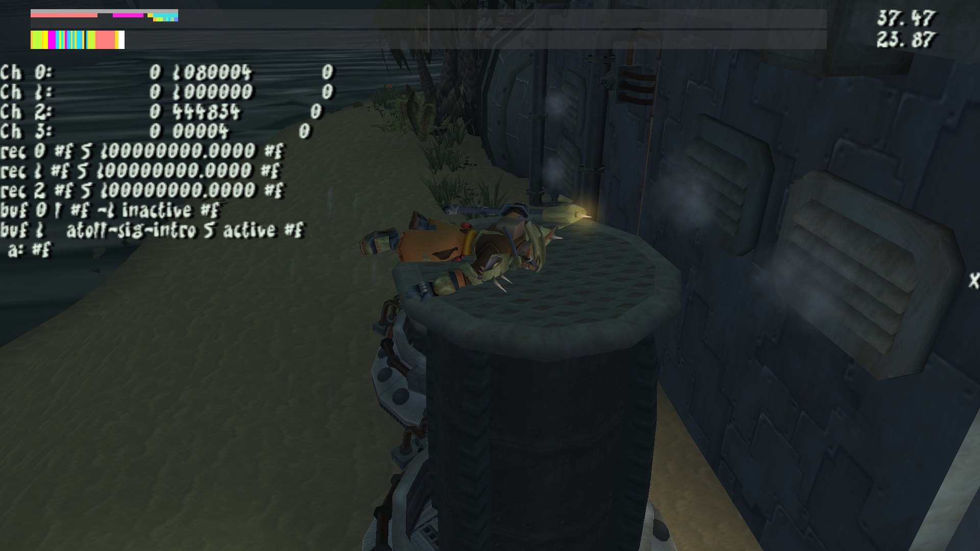 [2023-04-04] Hacking around that pesky gui-control issue, the Daxter chase sequence is pretty playable, though the streaming animation speed is too slow