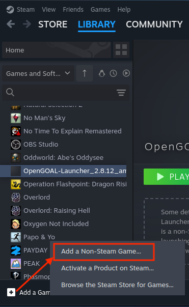 Similar to the previous section, you can manually install OpenGOAL on a SteamDeck