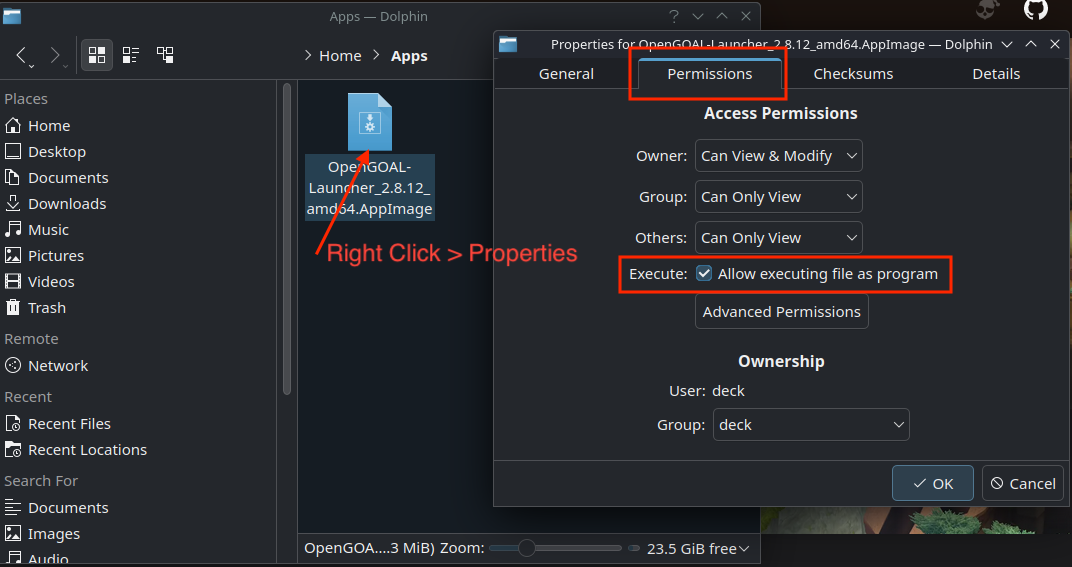 On the SteamDeck, there are some steps you'll likely need to take before you can successfully launch the launcher. The following steps are all done in desktop mode.